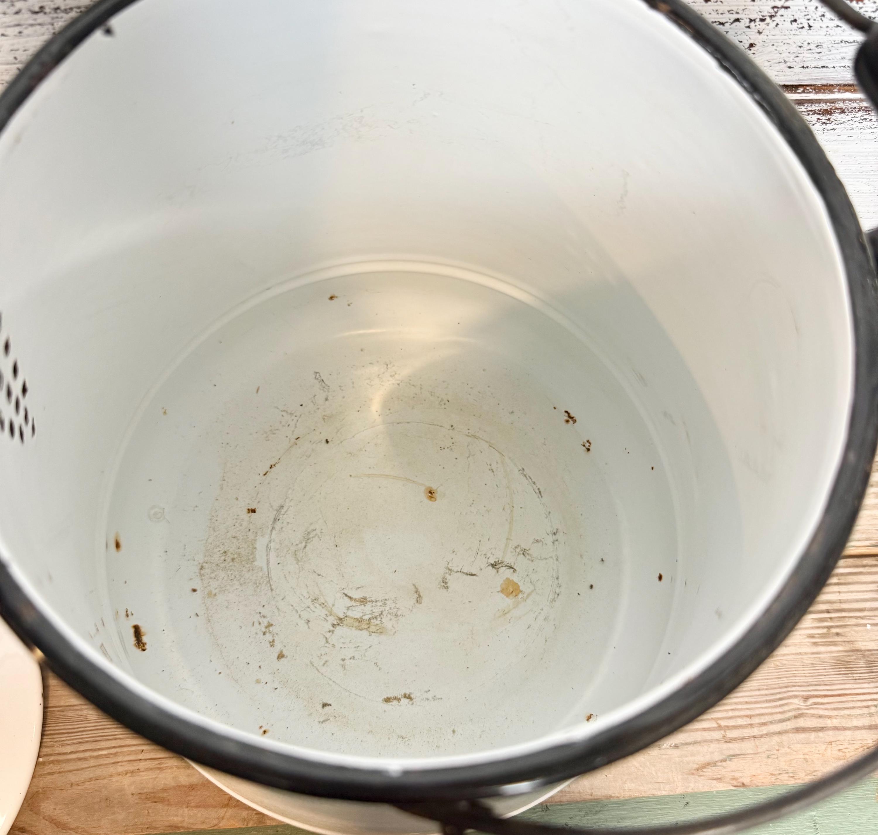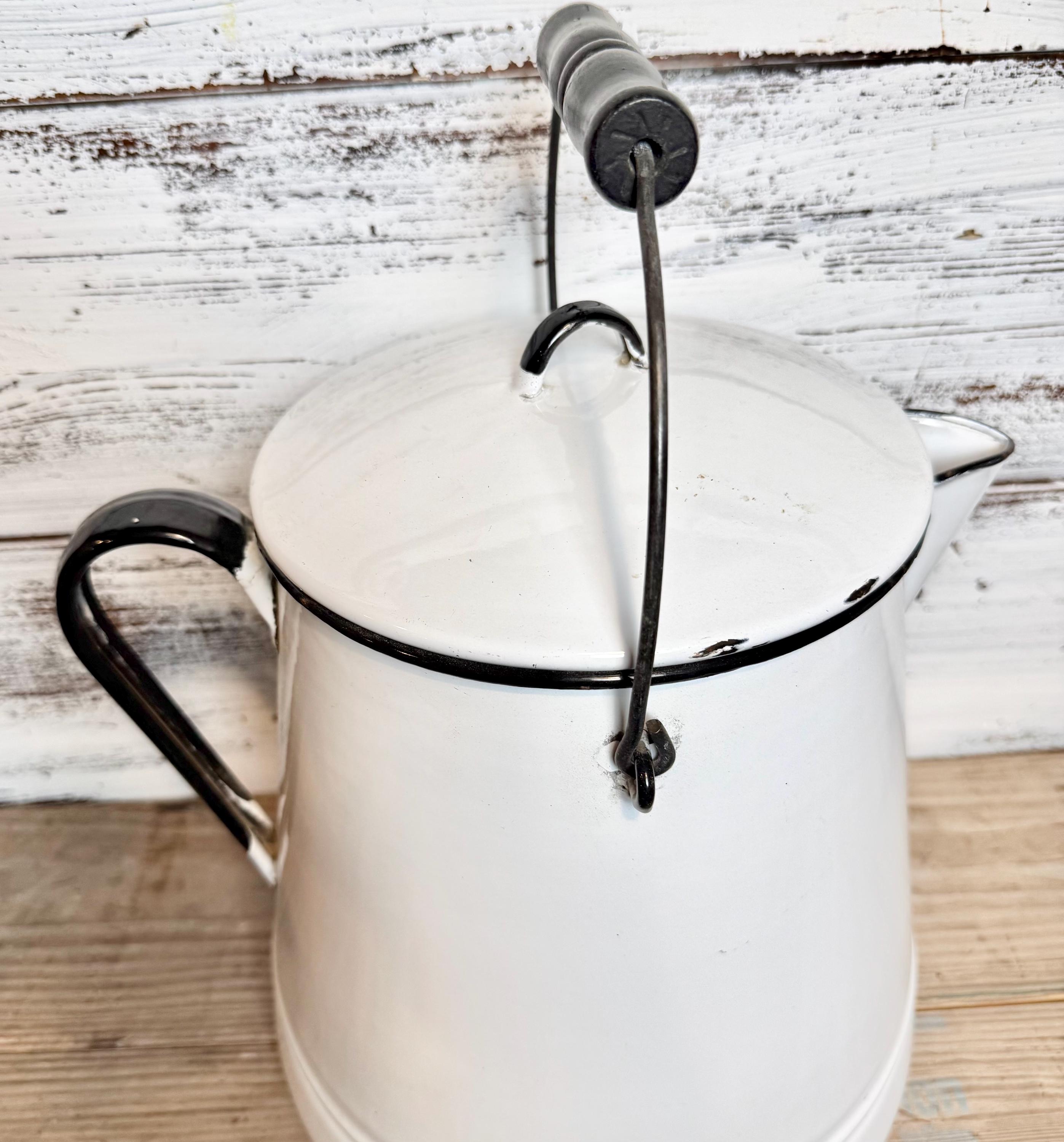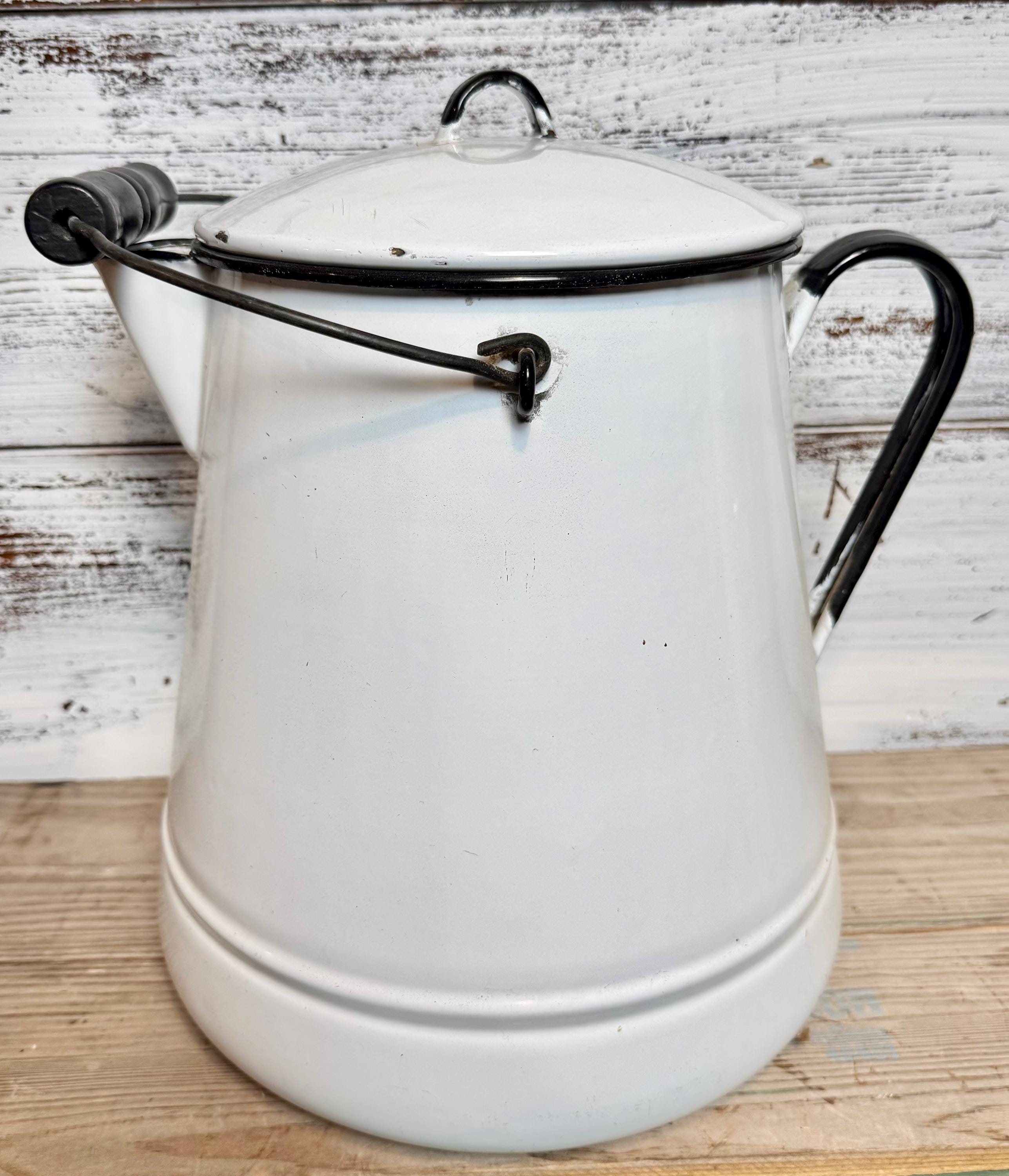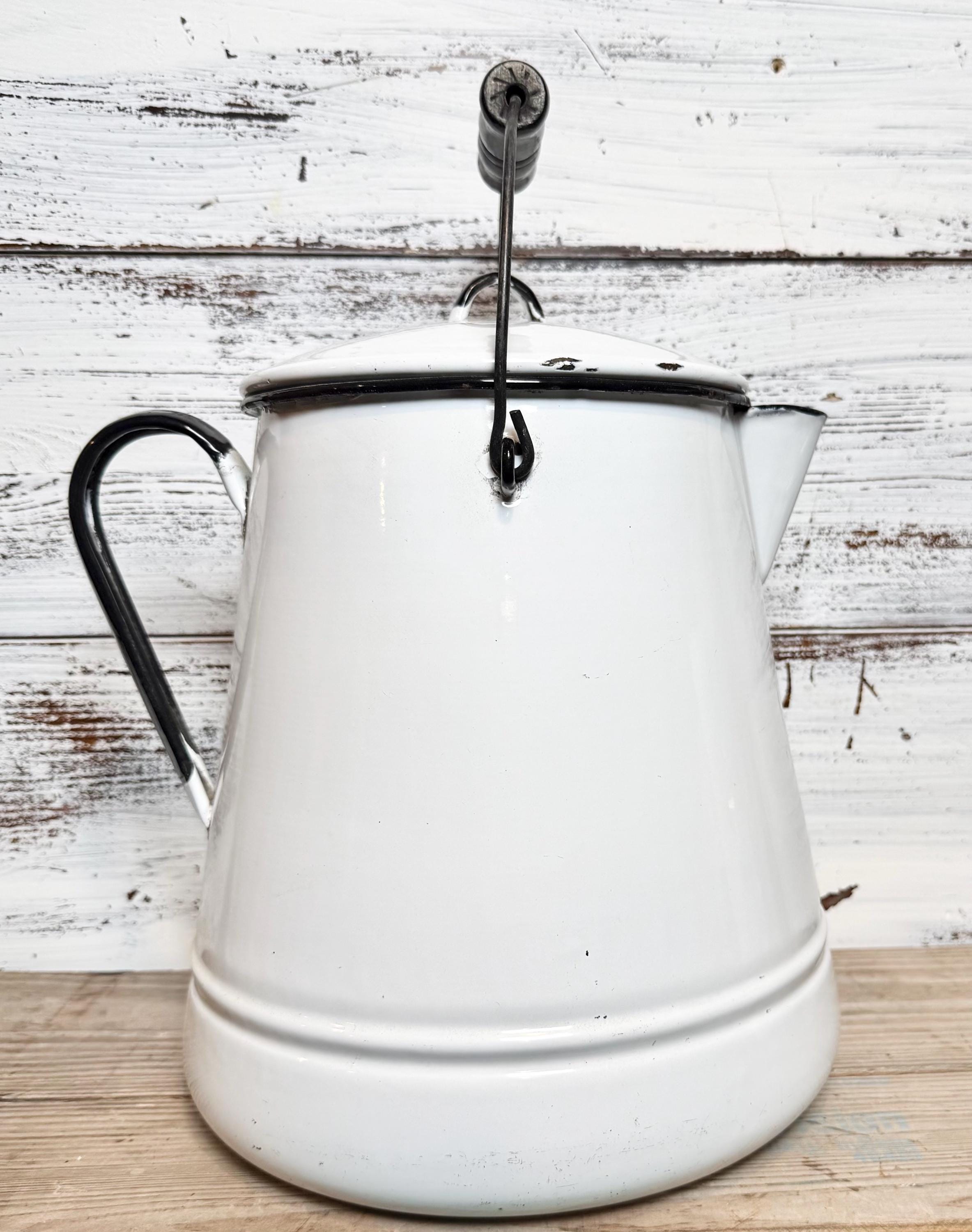 This enamel coffee pot is a large cowboy pot. Perfect for brewing and / or decoration.
