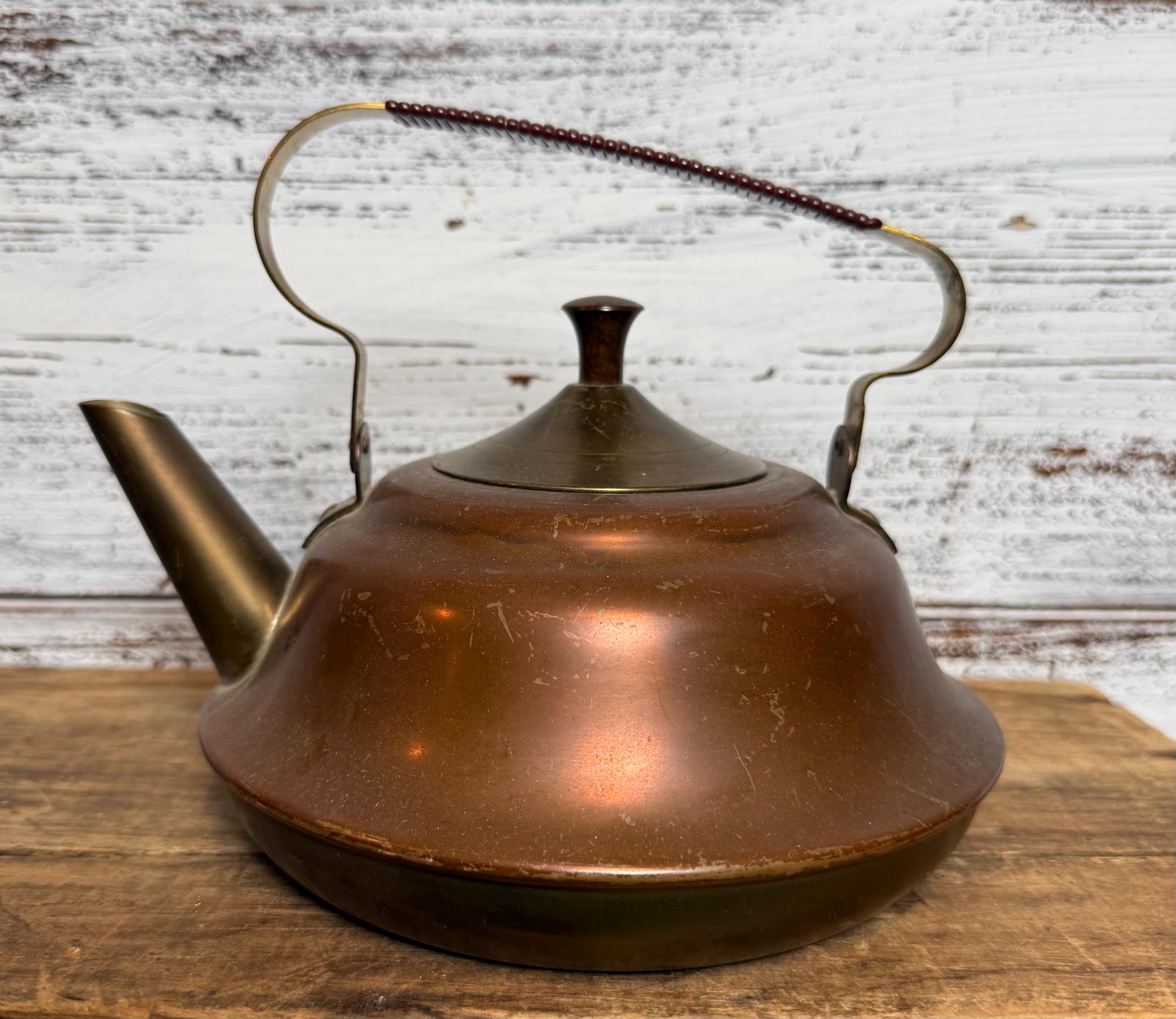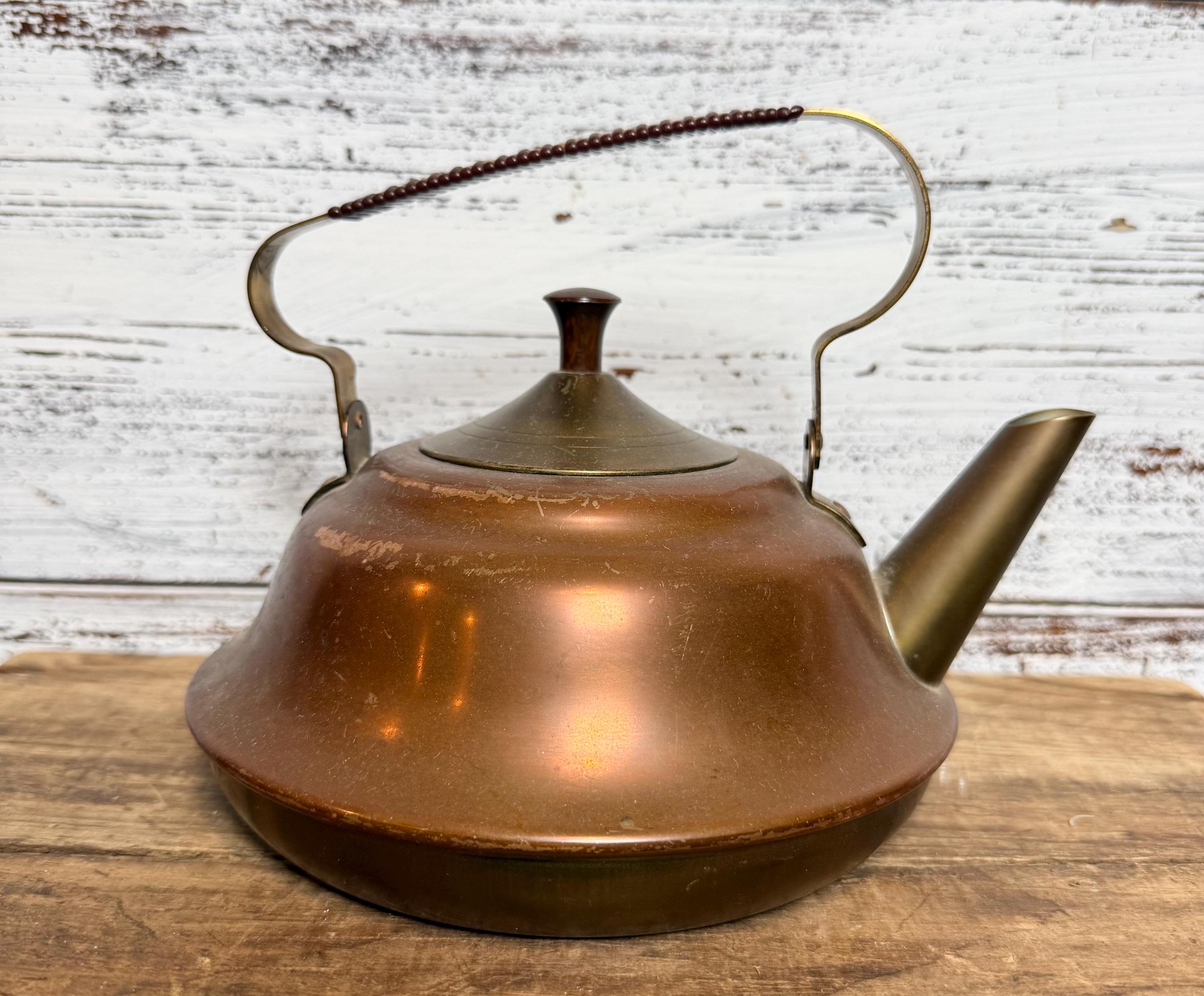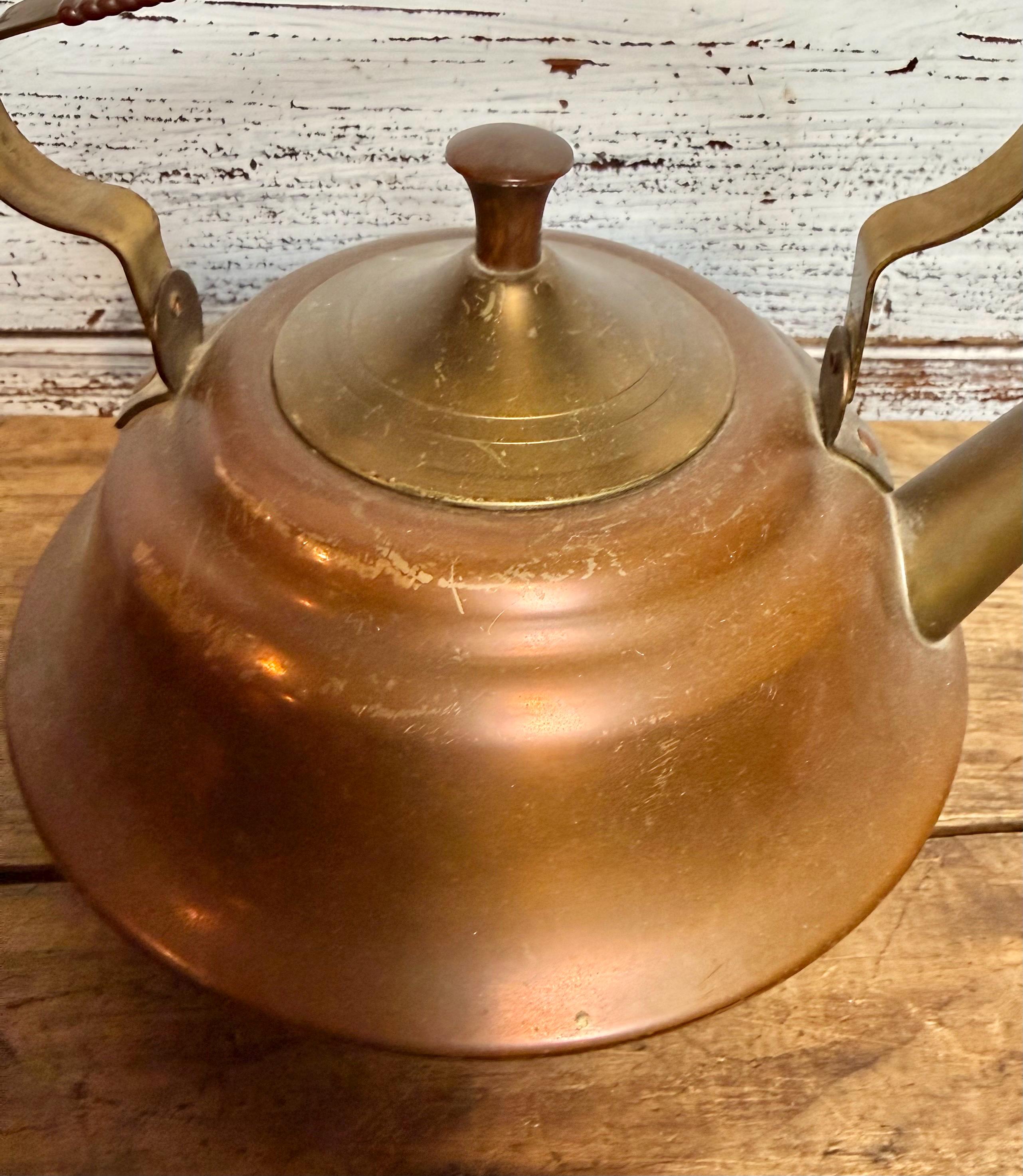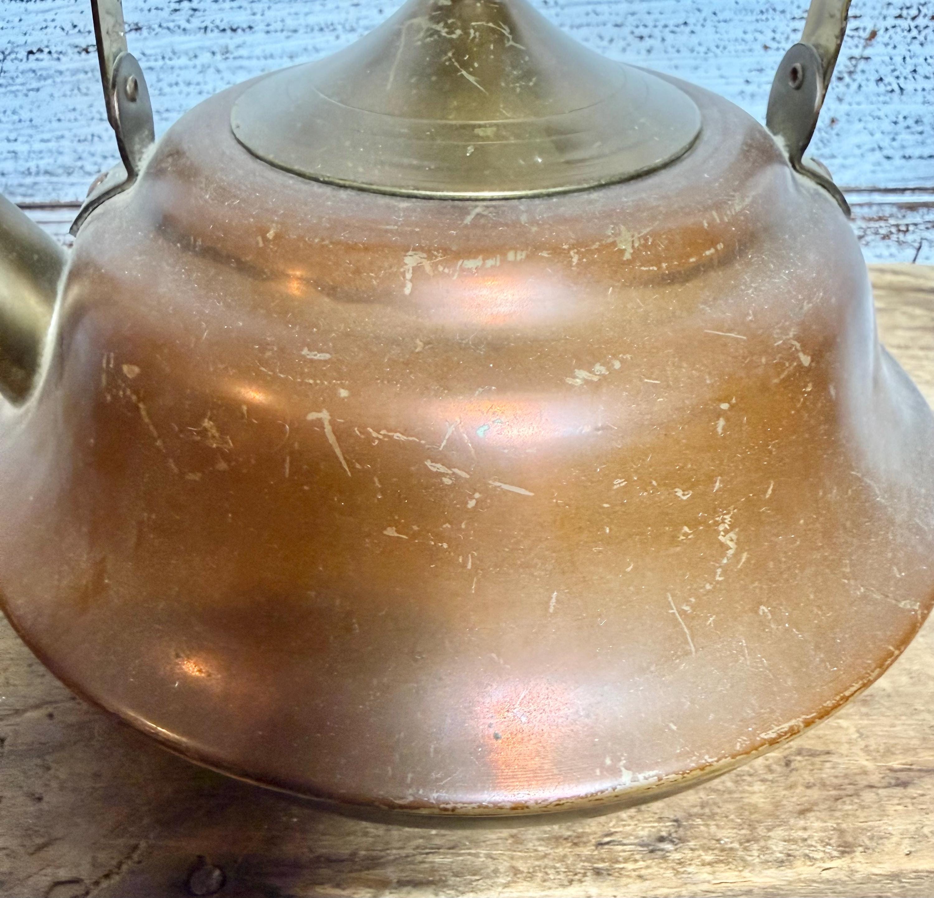 This beautiful kettle makes a great statement and tells a story. Minor surface wear in places tells years of use. Was left in original condition as found so new owner could decide to shine or leave. Free of dents.